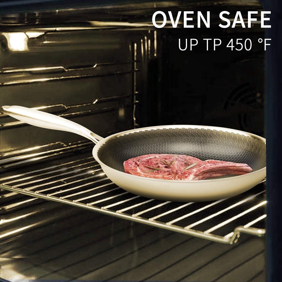 Cainfy roestvrijstalen anti-aanbak koekenpan met deksel 12 inch, 30 cm drielaags roestvrijstalen honingraat zware koekenpannen Vaatwasmachine- en ovenbestendig, anti-aanbak koekenpan Kookgerei voor gas- en inductiekookplaten