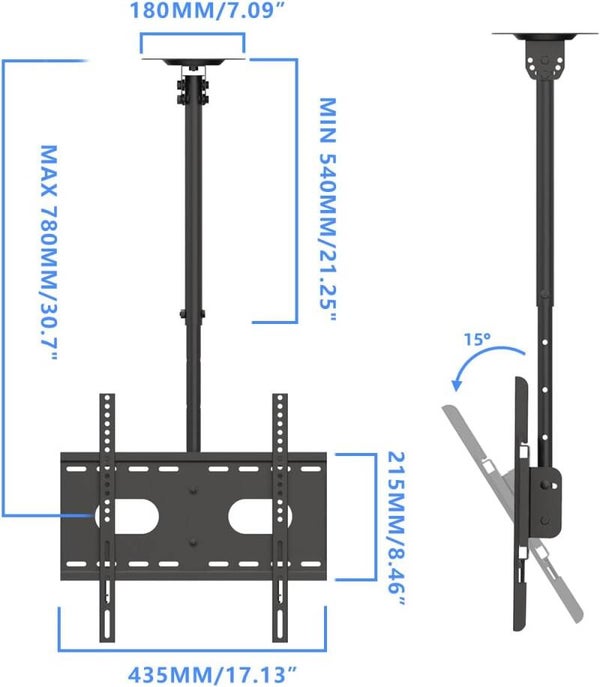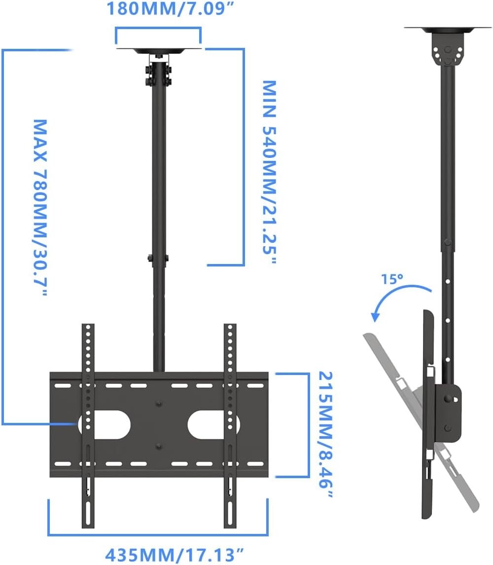 - Pakket inclusief: 1 tv-plafondhouder, een verlengstang van 78 cm, 1 standaard hardware-pakket.