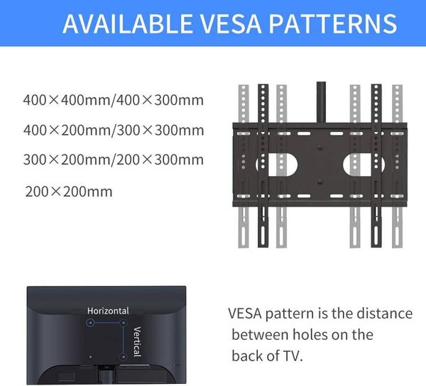 - Universele design plafondbeugel past op de meeste 26-55 inch displays. Controleer voor de installatie de tv-VESA en het gewicht.