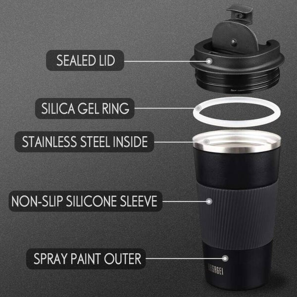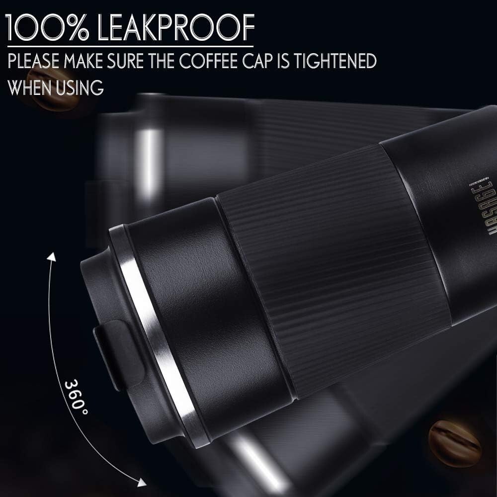 HASAGEI thermische mok - koffiemok, geïsoleerde mok, roestvrijstalen reismok, 380 ml lekvrije vacuümreismok met deksel, automok,..