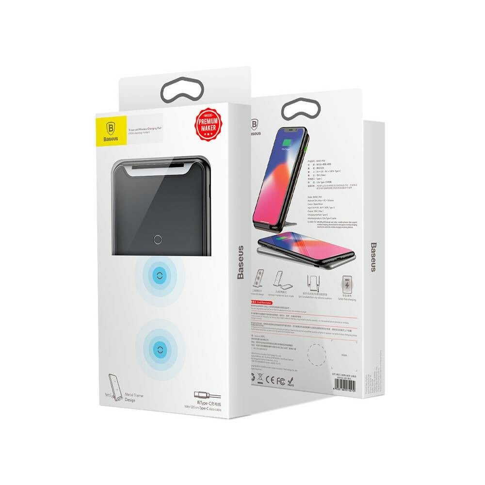Draadloze fast charger voor horizontaal of verticaal laden(inklapbare standaard). Extra groot oppervlak bestaande uit 3-coils en zacht non-slip silicoon materiaal.