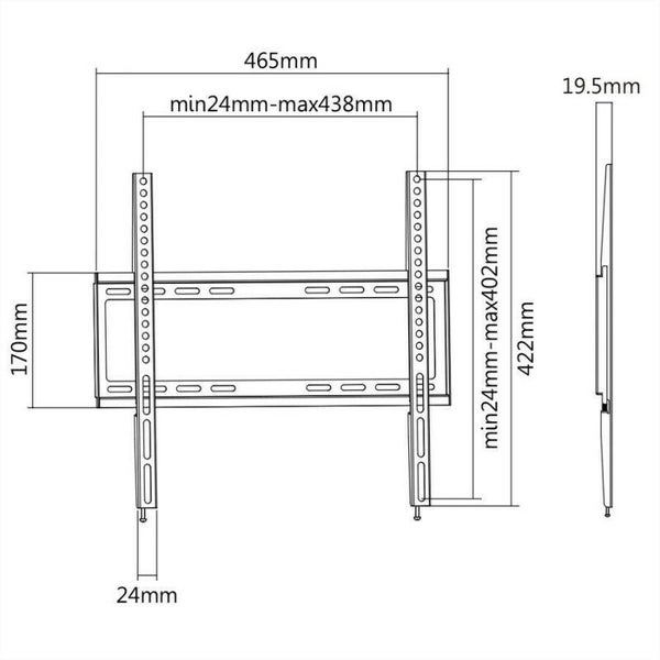 Voor de montage van televisies wordt er gebruikgemaakt van standaardmaten die aantonen welke afstand de bevestigingspunten aan de achterkant van de televisie tot elkaar hebben. Dit worden VESA-maten genoemd. Deze muurbeugel is geschikt voor televisies met een VESA-standaard van: 75 x 75 millimeter, 100 x 100 millimeter, 200 x 200 millimeter en 400 x 400 millimeter.