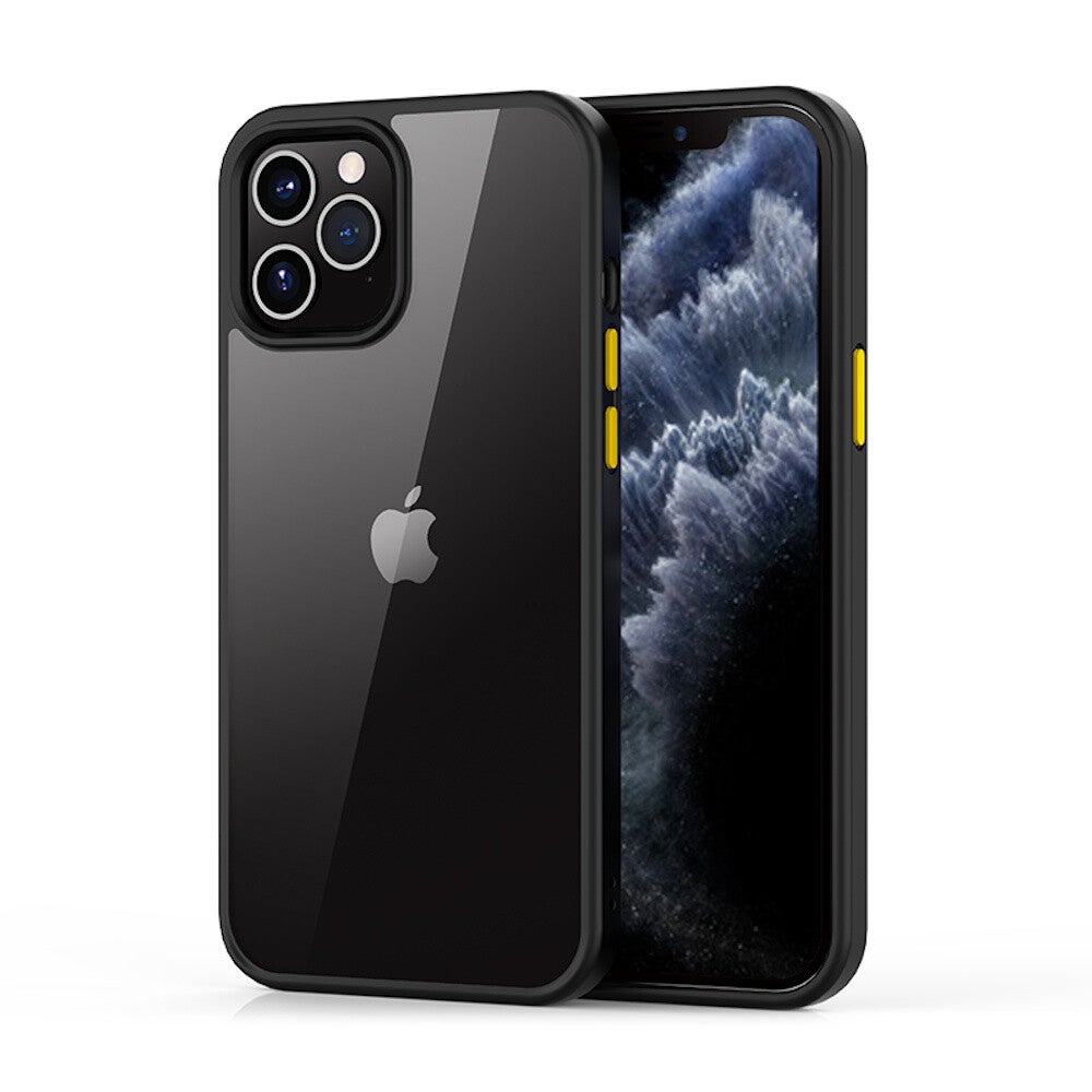 Devia Shockproof smartphone hoesje voor Apple iPhone 12 Pro Max 6.7'' . De case is gemaakt van een combinatie van harde achterkant en zachte zijkanten. De zijkanten hebben een matte finish voor een aangenaam gevoel en kleurrijke knoppen voor een leuk contrast.