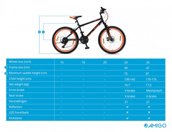 Word jij enthousiast van bospaden, scherpe bochten en snelle afdalingen? Dan is de AMIGO Next Level wat voor jou! De fiets is gemaakt van sterke en duurzame materialen, waardoor hij goed tegen een stootje kan. En met de brede banden heb je op iedere ondergrond genoeg grip. Ideaal voor een lekker rondje mountainbiken dus! Kortom, de AMIGO Next Level is een robuuste mountainbike die garant staat voor jarenlang mountainbike plezier.