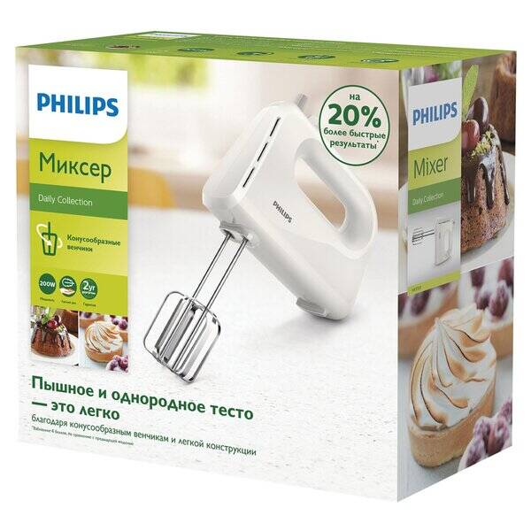 Deze Philips Handmixer is onmisbaar in je keuken. De mixer heeft een krachtige motor met een vermogen van 200 watt. De handmixer heeft drie snelheden en een handgreep met antislip voor eenvoudig gebruik.
