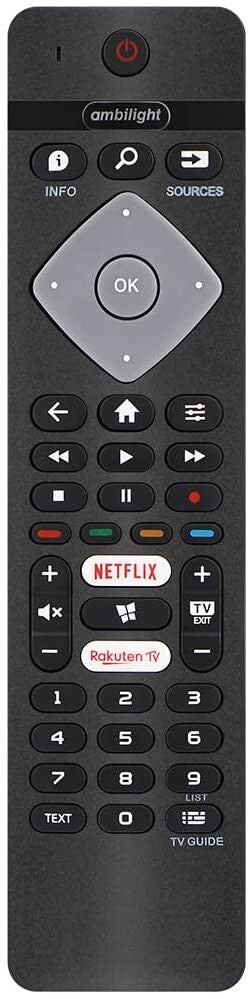afstandsbediening voor Philips Ambilight 4K Smart LED TV 75PUS6754/12 65PUS6754/12 65PUS6704/12 55PUS6754/12 50PUS6754/12 43PUS6754/12 - Geen installatie vereist - (Netflix en Rakuten TV-knoppen)