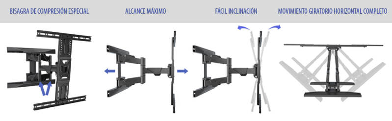 De EV600 zit dicht bij de muur vanwege zijn grootte van 52 mm en strekt zich uit tot 380 mm en biedt een volledige horizontale beweging van 160° om schittering van het scherm te elimineren en de optimale kijkervaring in uw huis te bieden.